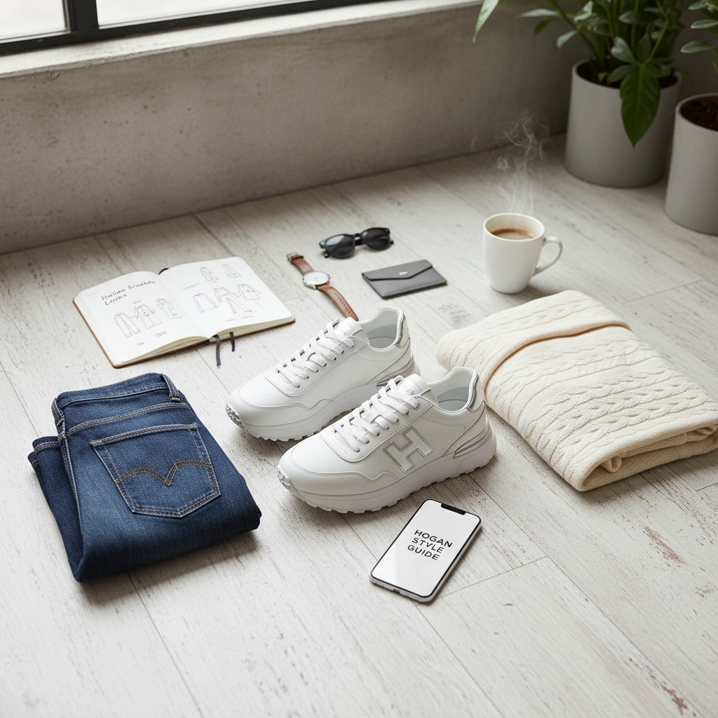 - Smart‑casual: straight‑leg jeans + silk blouse + trench coat + neutral Hogan sneakers